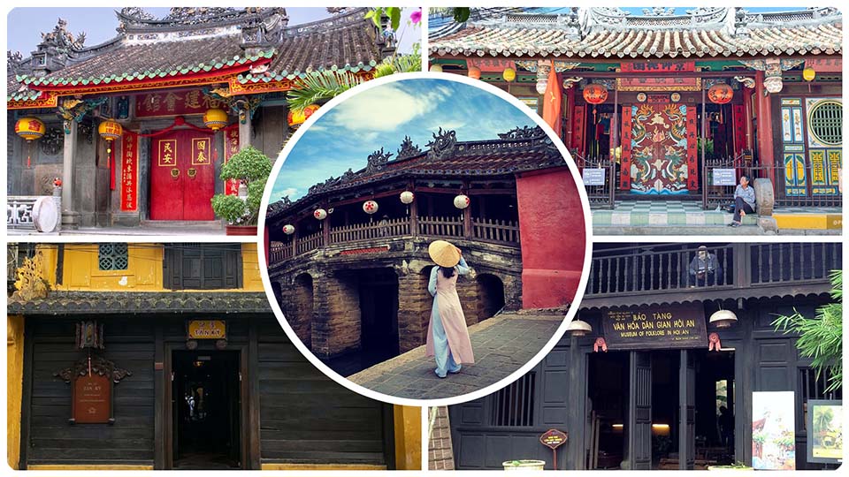 A arquitetura de Hoi An é um testemunho vivo do passado glorioso da cidade. As estreitas ruas de paralelepípedos são cercadas por edifícios com fachadas tradicionais bem preservadas, muitos dos quais são casas comerciais centenárias. Alguns dos principais pontos de interesse incluem: