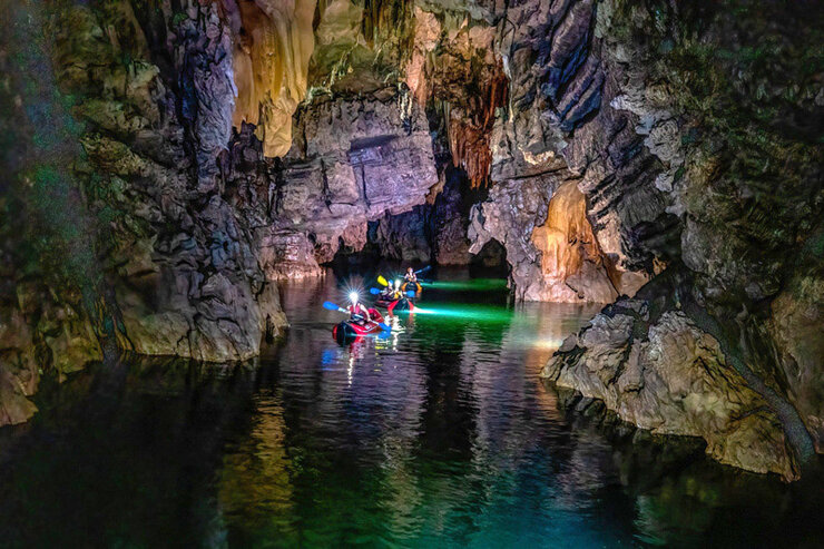 O Parque Phong Nha abriga algumas cavernas cársticas impressionantes, incluindo a famosa caverna Son Doong. Você pode andar de caiaque em família, divertir-se na Dark Cave, onde são organizadas atividades (inclusive tirolesa), ou pode levar sua aventura um passo adiante e reservar uma excursão de vários dias para descobrir as cavernas com sua família.